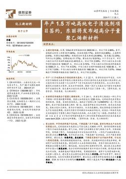 [高分子]2024-01-29-德邦证券-化工新材料行业周报:年产1.5万吨高纯电子清洗剂项目签约,东丽将发布超高分子量聚乙烯新材料-11页(银创产业通www.chanyetong.net)(银创产业通www.chanyetong.net)