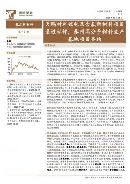 [高分子]2023-12-25-德邦证券-化工新材料行业周报:天赐材料锂电及含氟新材料项目通过环评,泰州高分子材料生产基地项目签约-11页(银创产业通www.chanyetong.net)(银创产业通www.chanyetong.net)