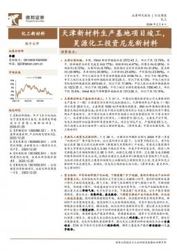 [高分子]2024-02-05-德邦证券-化工新材料行业周报:天津新材料生产基地项目竣工,昊源化工投资尼龙新材料-11页(银创产业通www.chanyetong.net)(银创产业通www.chanyetong.net)