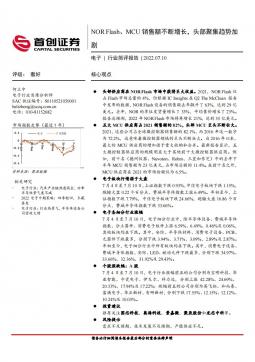 [电子]2022-07-12-首创证券-电子行业简评报告:NOR Flash、MCU销售额不断增长,头部聚集趋势加剧-10页(银创产业通www.chanyetong.net)