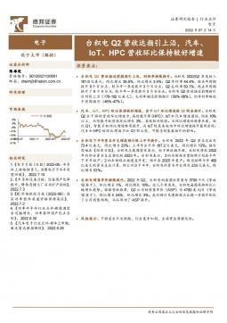 [电子]2022-07-15-德邦证券-电子行业点评:台积电Q2营收达指引上沿,汽车、IoT、HPC营收环比保持较好增速-8页(银创产业通www.chanyetong.net)(银创产业通www.chanyetong.net)