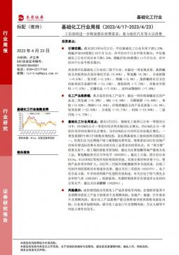 [化工]2023-04-24-东莞证券-基础化工行业周报:工信部将进一步释放潜在消费需求,着力稳住汽车等大宗消费-12页(银创产业通www.chanyetong.net)