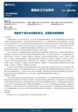 [化工]2023-05-08-国金证券-基础化工行业研究报告:弱复苏下龙头白马再获关注,主题投资值得期待-18页(银创产业通www.chanyetong.net)