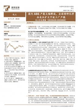 [化工]2023-05-08-德邦证券-化工行业周报:国内ABS产能大幅释放,国内ABS产能大幅释放,全球特种化学品龙头扩大宁波工厂产能-26页(银创产业通www.chanyetong.net)