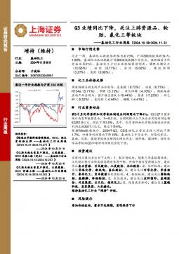 [化工]2024-11-08-上海证券-基础化工行业周报:Q3业绩同比下降,关注上游资源品、轮胎、氟化工等板块-11页(银创产业通www.chanyetong.net)