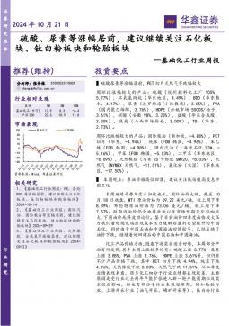 [化工]2024-10-21-华鑫证券-基础化工行业周报:硫酸、尿素等涨幅居前,建议继续关注石化板块、钛白粉板块和轮胎板块-31页(银创产业通www.chanyetong.net)