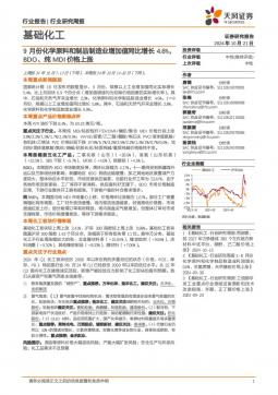 [化工]2024-10-21-天风证券-基础化工行业研究周报:9月份化学原料和制品制造业增加值同比增长4.6%,BDO、纯MDI价格上涨-20页