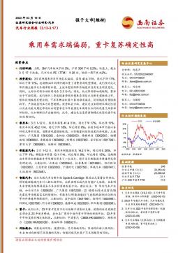 [汽车零部件]2023-03-20-西南证券-汽车行业周报:乘用车需求端偏弱,重卡复苏确定性高-24页(银创产业通www.chanyetong.net)(银创产业通www.chanyetong.net)