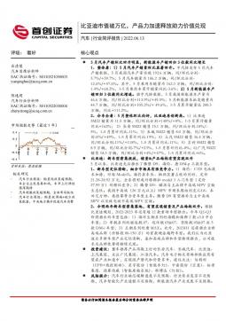 [汽车整车]2022-06-13-首创证券-汽车行业简评报告:比亚迪市值破万亿,产品力加速释放助力价值兑现-13页(银创产业通www.chanyetong.net)(银创产业通www.chanyetong.net)