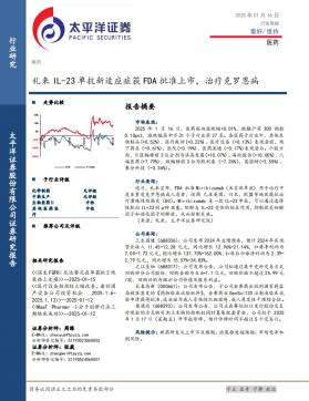 [医药]2025-01-19-太平洋-医药行业周报:礼来IL-23单抗新适应症获FDA批准上市,治疗克罗恩病-3页(银创产业通www.chanyetong.net)