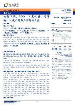 [化工]2022-09-19-安信证券-基础化工行业周报:油价下跌,BDO、三氯化磷、丙烯酸、三氯乙烯等产品价格上涨-5页(银创产业通www.chanyetong.net)