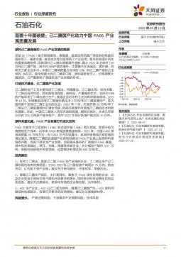 [化工]2022-09-15-天风证券-石油石化:面壁十年图破壁:己二腈国产化助力中国PA66产业高质量发展-19页(银创产业通www.chanyetong.net)