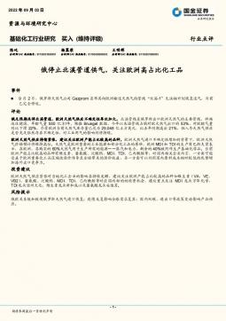 [化工]2022-09-05-国金证券-基础化工行业研究:俄停止北溪管道供气,关注欧洲高占比化工品-3页(银创产业通www.chanyetong.net)