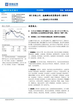 [化工]2023-10-30-国海证券-基础化工行业周报:MDI价格上行,森麒麟拟投资摩洛哥二期项目-64页(银创产业通www.chanyetong.net)