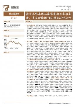[化工]2023-10-31-德邦证券-化工新材料行业周报:南大光电高纯三氟化氮项目成功备案,孚日新能源FEC项目环评公示-9页(银创产业通www.chanyetong.net)