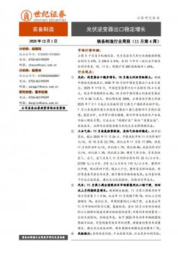 [光伏]2025-12-01-世纪证券-装备制造行业周报(11月第4周):光伏逆变器出口稳定增长-9页(银创产业通www.chanyetong.net)