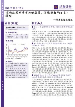 [互联网]2025-10-20-华鑫证券-计算机行业周报:英伟达发布多项关键成果,谷歌推出Veo 3.1模型-19页(银创产业通www.chanyetong.net)