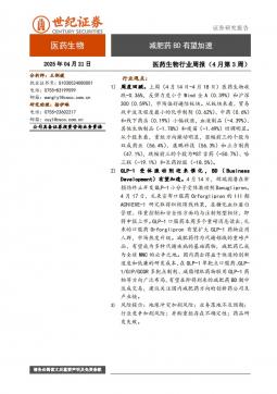 [医药]2025-04-21-世纪证券-医药生物行业周报(4月第3周):减肥药BD有望加速-8页(银创产业通www.chanyetong.net)