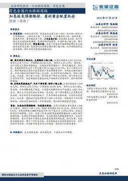 [金属]2023-07-30-东吴证券-有色金属行业跟踪周报:加息结束预期维持,看好黄金配置机会-21页(银创产业通www.chanyetong.net)
