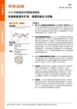 [汽车零部件]2023-12-03-平安证券-2024年新能源车供需格局展望:高端新能源车扩容,增量贡献主力切换-28页(银创产业通www.chanyetong.net)(银创产业通www.chanyetong.net)