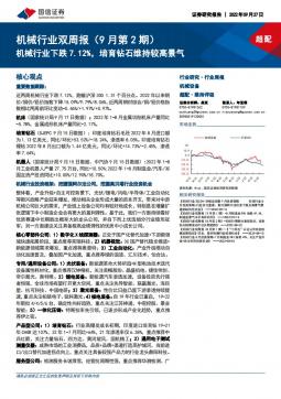 [通用设备]2022-09-28-国信证券-机械行业双周报(9月第2期):机械行业下跌7.12%,培育钻石维持较高景气-25页(银创产业通www.chanyetong.net)