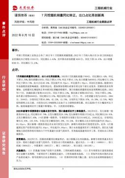 [工程机械]2022-08-10-东莞证券-工程机械行业跟踪点评:7月挖掘机销量同比转正,出口占比再创新高-3页(银创产业通www.chanyetong.net)(银创产业通www.chanyetong.net)