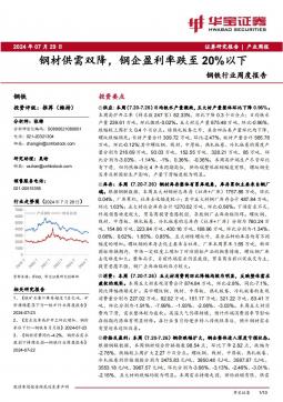 [金属]2024-07-29-华宝证券-钢铁行业周度报告:钢材供需双降,钢企盈利率跌至20%以下-10页