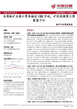 [金属]2024-07-30-华宝证券-铁矿行业周度报告:本周铁矿石港口累库接近150万吨,矿价连续第三周震荡下行-8页(银创产业通www.chanyetong.net)