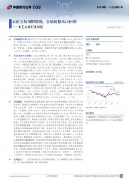[金属]2024-07-29-中邮证券-有色金属行业报告:衰退交易持续,有色金属整体承压-14页(银创产业通www.chanyetong.net)