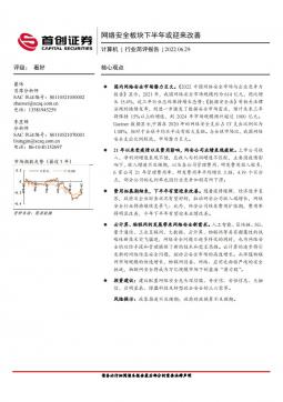 [信息技术]2022-07-01-首创证券-计算机 行业简评报告:网络安全板块下半年或迎来改善-7页(银创产业通www.chanyetong.net)