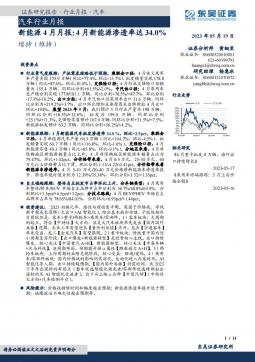 [汽车零部件]2023-05-19-东吴证券-新能源4月月报:4月新能源渗透率达34.0%-11页(银创产业通www.chanyetong.net)