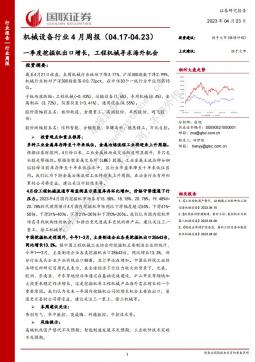 [通用设备]2023-04-23-国联证券-机械设备行业4月周报:一季度挖掘机出口增长,工程机械寻求海外机会-11页(银创产业通www.chanyetong.net)(银创产业通www.chanyetong.net)