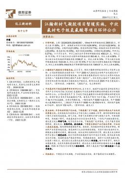 [前沿新材料]2024-02-19-德邦证券-化工新材料行业周报:江瀚新材气凝胶项目暂缓实施,中欣氟材电子级氢氟酸等项目环评公示-10页(银创产业通www.chanyetong.net)