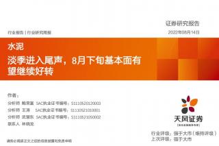 [无机材料]2022-08-15-天风证券-水泥行业研究周报:淡季进入尾声,8月下旬基本面有望继续好转-21页(银创产业通www.chanyetong.net)