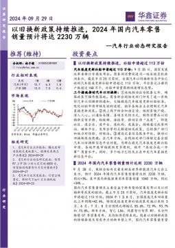 [汽车零部件]2024-09-30-华鑫证券-汽车行业动态研究报告:以旧换新政策持续推进,2024年国内汽车零售销量预计将达2230万辆-5页(银创产业通www.chanyetong.net)(银创产业通www.chanyetong.net)