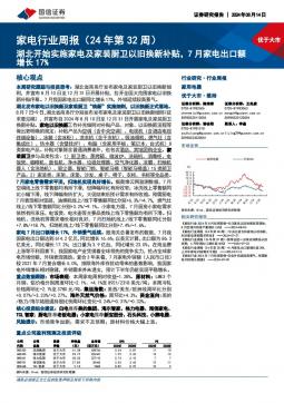 [家电家居]2024-08-14-国信证券-家电行业周报(24年第32周):湖北开始实施家电及家装厨卫以旧换新补贴,7月家电出口额增长17%-15页(银创产业通www.chanyetong.net)
