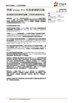 [电子]2024-02-27-天风证券-苹果Vision Pro开发者调研问卷:游戏视频内容有望率先破圈,开发者长期保持乐观-2页(银创产业通www.chanyetong.net)