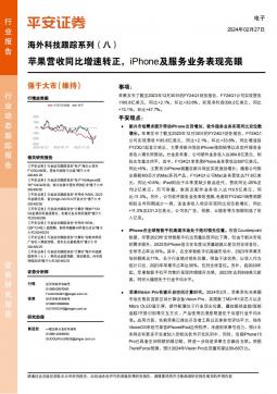 [电子]2024-02-27-平安证券-电子:海外科技跟踪系列(八)-苹果营收同比增速转正,iPhone及服务业务表现亮眼-7页(银创产业通www.chanyetong.net)(银创产业通www.chanyetong.net)