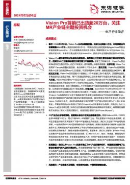 [电子]2024-02-08-东海证券-电子行业简评:Vision Pro首销已出货超20万台,关注MR产业链主题投资机会-13页(银创产业通www.chanyetong.net)