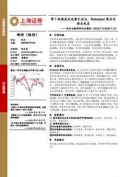 [无人驾驶]2024-07-17-上海证券-汽车行业周报:萝卜快跑武汉运营引关注,Robotaxi商业化拐点或至-13页(银创产业通www.chanyetong.net)(银创产业通www.chanyetong.net)