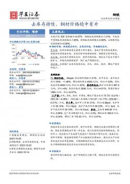 [金属]2023-11-12-华安证券-钢铁行业周报:去库存持续,钢材价格稳中有升-12页(银创产业通www.chanyetong.net)