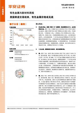 [金属]2024-07-28-平安证券-有色金属与新材料周报:美国衰退交易结束,有色金属价格或见底-14页(银创产业通www.chanyetong.net)