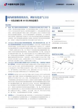 [金属]2024-11-08-中国银河-有色金属行业10月行业动态报告:国内政策将持续出台,利好有色景气上行-25页(银创产业通www.chanyetong.net)