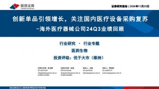 [医疗器械]2024-11-25-国信证券-海外医疗器械公司24Q3业绩回顾:创新单品引领增长,关注国内医疗设备采购复苏-40页(银创产业通www.chanyetong.net)(银创产业通www.chanyetong.net)
