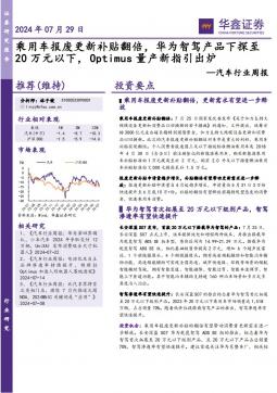 [汽车零部件]2024-07-29-华鑫证券-汽车行业周报:乘用车报废更新补贴翻倍,华为智驾产品下探至20万元以下,Optimus量产新指引出炉-15页(银创产业通www.chanyetong.net)(银创产业通www.chanyetong.net)