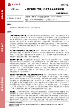 [汽车整车]2023-05-16-东莞证券-汽车行业跟踪点评:4月产销环比下滑,市场竞争格局有望缓解-3页(银创产业通www.chanyetong.net)(银创产业通www.chanyetong.net)