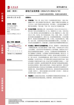 [家电家居]2024-02-21-太平洋-白色家电Ⅱ行业周报:2024W05黑电、小家电整体表现优秀,白电、厨电稳健增长-13页(银创产业通www.chanyetong.net)(银创产业通www.chanyetong.net)