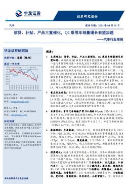 [汽车零部件]2024-04-10-华龙证券-汽车行业周报:信贷、补贴、产品三重催化,Q2乘用车销量增长有望加速-18页(银创产业通www.chanyetong.net)(银创产业通www.chanyetong.net)