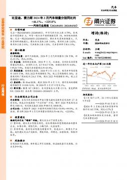 [汽车零部件]2024-04-09-甬兴证券-汽车行业周报:比亚迪、赛力斯2024年3月汽车销量分别同比约+46.1%、+225.8%-12页(银创产业通www.chanyetong.net)