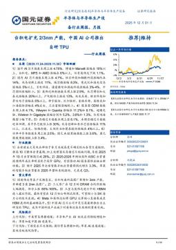 [半导体]2025-12-01-国元证券-半导体与半导体生产设备行业周报:台积电扩充2-3nm产能,中国AI公司推出自研TPU-11页(银创产业通www.chanyetong.net)